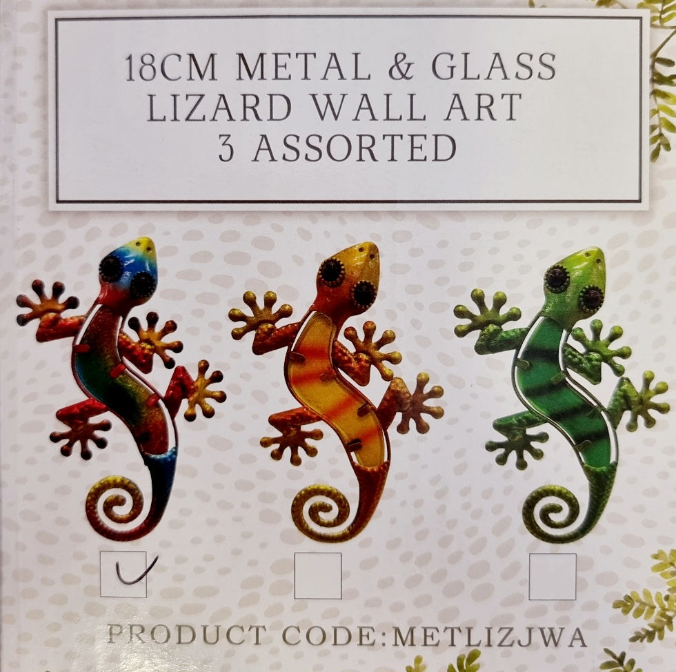 18cm Metal & Glass Lizard Wall Art