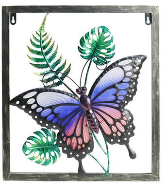 40x 40cm Glass Metal Butterfly Framed