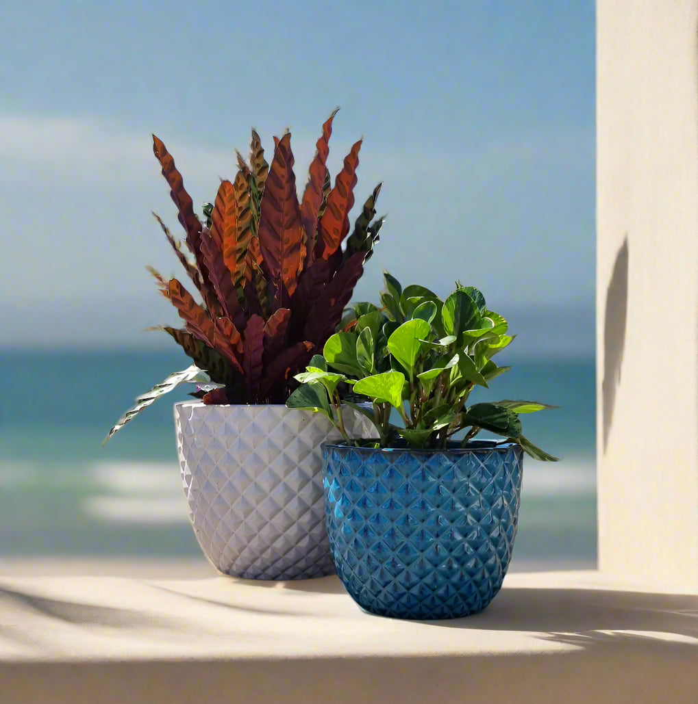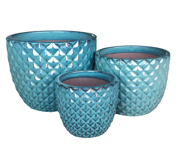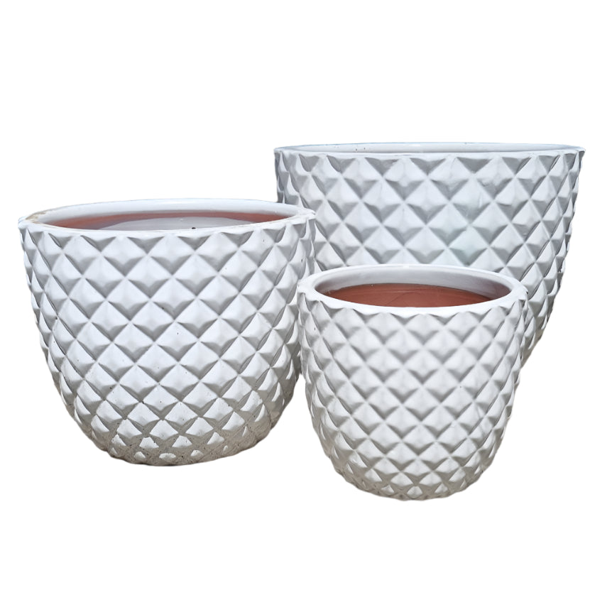 Add a touch of charm to your garden with the Pineapple Pot, a beautifully textured glazed pot featuring a distinctive diamond pattern reminiscent of its namesake. Its compact, rounded shape makes it perfect for small plants, flowers, or succulents, while the glossy finish enhances its vibrant appeal. Available in three sizes, this pot is a stylish accent for both indoor and outdoor spaces.