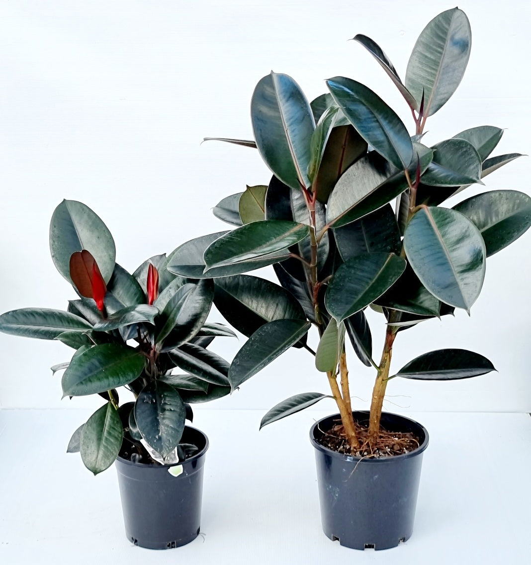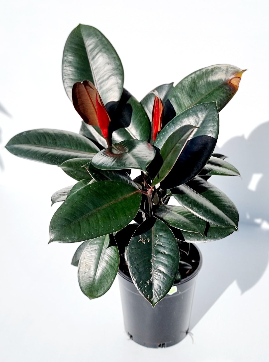 Rubber Plants make fabulous, easy care, household plants. With their beautiful deep green foliage backed by a pink tinge, they can easily make a statement of their own. Rubber plants prefer loads of light but not direct sunlight. Placing by a window with a sheer curtain is an ideal spot for a Rubber Plant. Well draining soil is essential for your Rubber Plant so as not to get root rot. Keep the soil moist during the hotter months but not soggy. During the winter months your Rubber Plant might only require a once monthly water, just watch for when it's leaves start droop and you'll know it needs a drink. Keep their leaves clean by misting often or wiping with a damp cloth and fertilise only during the growing season. These beauties can grow up to 3m high indoors but growth is restricted by the pot size you choose to keep them in.