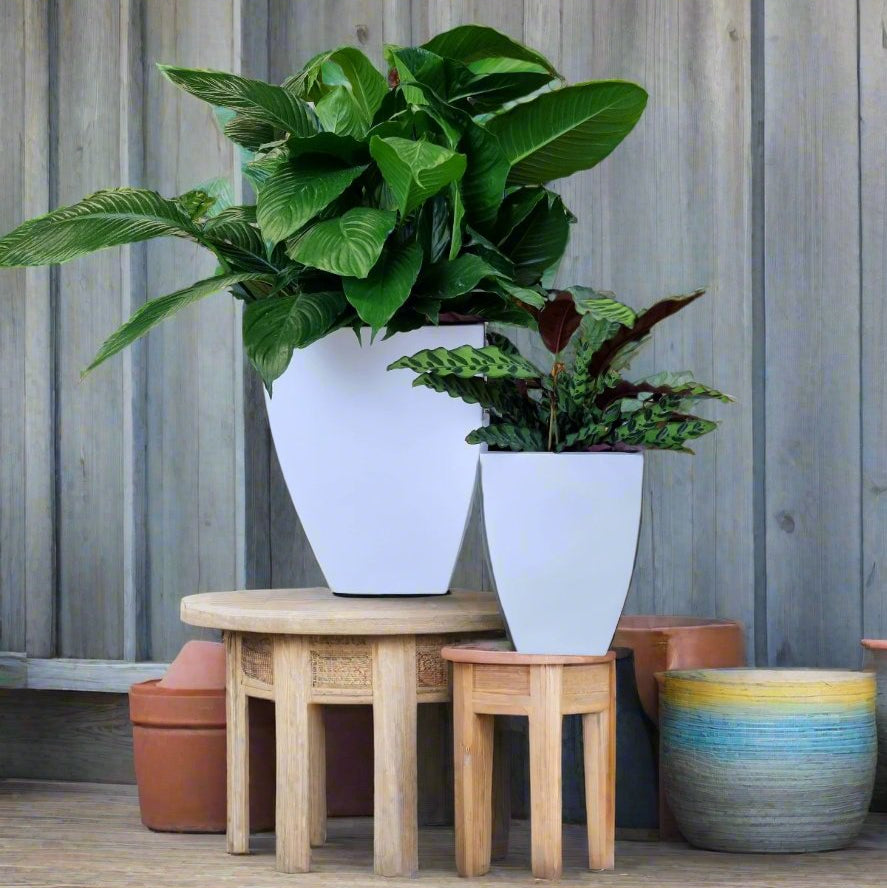 Our Premium fibreglass pots are suitable for indoors as well as being tough enough to endure outdoors. However the glossy black colour does tend to show up water marks so if you're putting them out in the rain, you'll have to bear this in mind. Matte colours are currently available in egg and rectangle shapes, the other styles can be ordered but would take approximately 6 weeks to arrive. Whether you choose to plant into them or merely use them for their stunning modern appearance, they are extremely lightweight and versatile. Our Glossy Fibreglass pots do not come fitted with drainage holes - easily available on request. Our Matte Fibreglass pots come with drainage holes. Please contact us for availability and if we do not have it, we can get it for you in approximately 6 weeks. We are able to arrange shipping to anywhere within Australia, so please feel free to contact us with any questions regarding postage costs and estimated shipping time and we will get back to you as soon as possible with a quote.