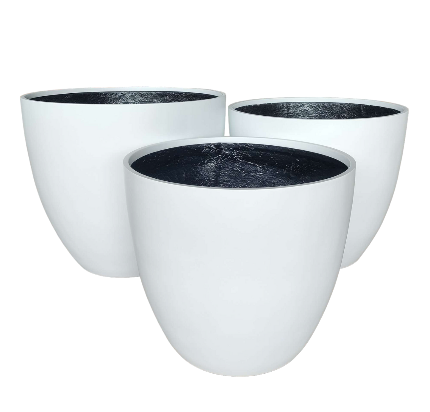 Our Premium fibreglass pots are suitable for indoors as well as being tough enough to endure outdoors. However the glossy black colour does tend to show up water marks so if you're putting them out in the rain, you'll have to bear this in mind. Matte colours are currently available in egg and rectangle shapes, the other styles can be ordered but would take approximately 6 weeks to arrive. Whether you choose to plant into them or merely use them for their stunning modern appearance, they are extremely lightweight and versatile. Our Glossy Fibreglass pots do not come fitted with drainage holes - easily available on request. Our Matte Fibreglass pots come with drainage holes. Please contact us for availability and if we do not have it, we can get it for you in approximately 6 weeks. We are able to arrange shipping to anywhere within Australia, so please feel free to contact us with any questions regarding postage costs and estimated shipping time and we will get back to you as soon as possible with a quote.